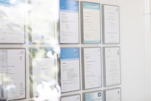 Um dauerhaft höchste Qualität auf allen Ebenen zu gewährleisten, beziehen wir auch unsere Mitarbeiter in unsere ständige Fort- und Weiterbildungsverpflichtung mit ein. In regelmäßigen Team-Meetings hinterfragen und verbessern wir stetig unsere angewandten Behandlungsmethoden, kontrolliert durch ein konsequentes Qualitätsmanagement.